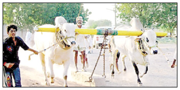 ‘నేను ఆరేళ్ళుగా బండెద్దులను పోషిస్తున్నాను. వీటిలో రెండెద్దులు చనిపోయాయి. అప్పుడు ఎంతో బాధపడ్డాను. ఈ రెండు కలసి 25 లక్షలు విలువ చేసేవి’ అని అక్బర్ చెప్పాడు.